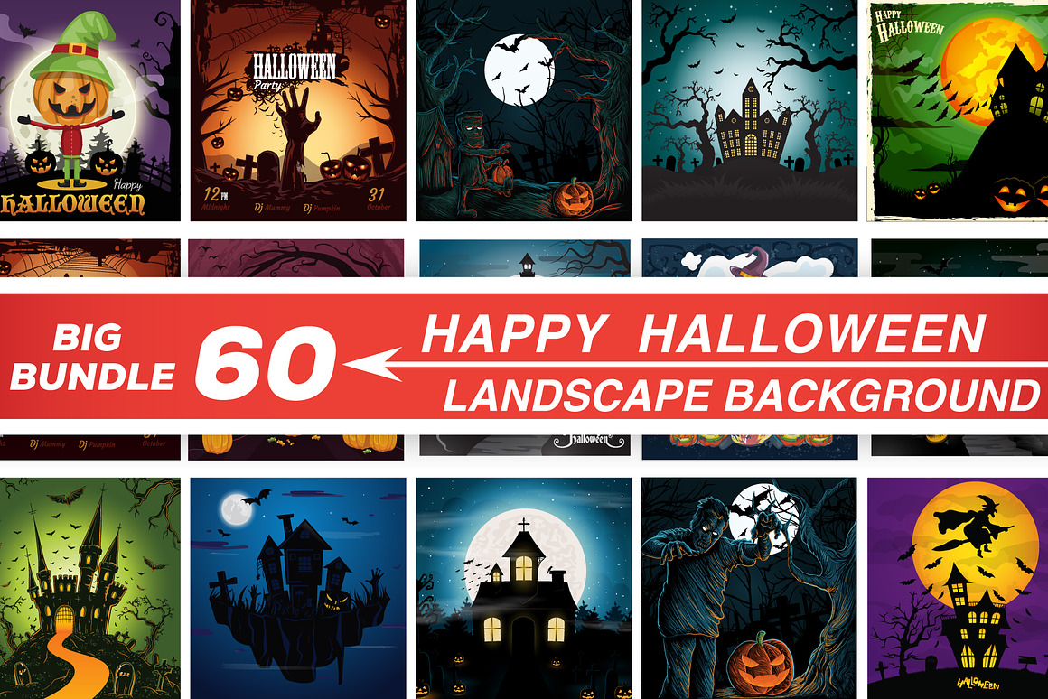 This is a beautiful collection of 60+ Halloween Illustration Backgrounds Bundle.